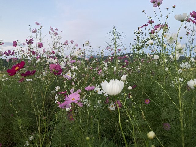 コスモスがきれいで、なぜコスモスなのか、研究社新英和辞典を引くと、「秩序, 宇宙, 世界」分かる気がします。